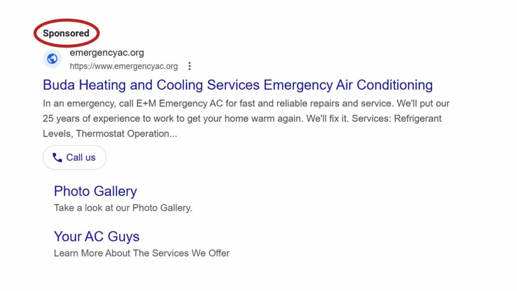 The first thing you might see on Google is Google Ads. These are paid spots where businesses show their websites to people searching for certain words. Ads always say “Sponsored” or “Ad” next to them so you know they are paid for.